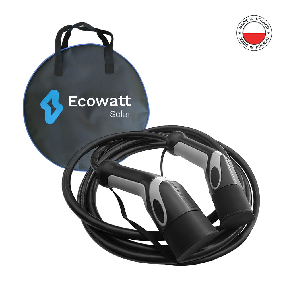 Kabel EV Ecowatt Solar je prakticky nezničitelný. Odolné vůči UV záření, stříkající vodě, chemikáliím a ohni. Možnost individuálního výběru délky kabelu zajišťuje komfort používání za všech podmínek. Univerzální zástrčky typu 2 zajišťují kompatibilitu se všemi stanicemi v Evropě.